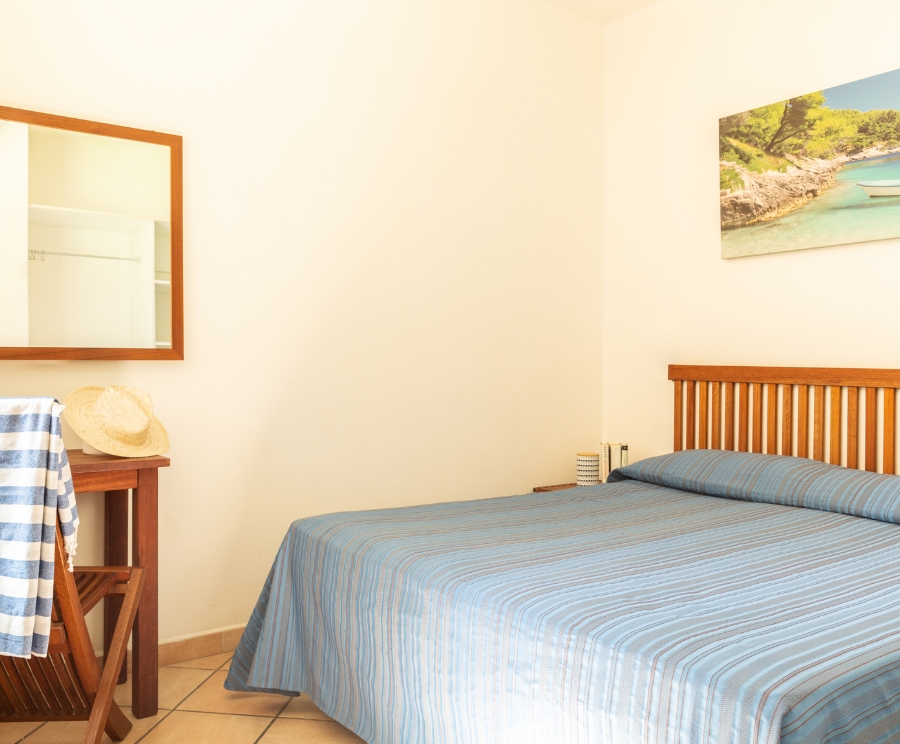 The Cottage Superior Giglio can accommodate up to 4 people, thanks to a double bedroom and a living room with two single beds.