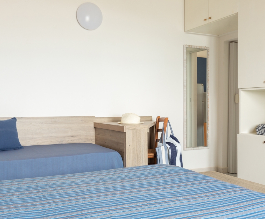 La camera con letto matrimoniale e letto singolo è accogliente e funzionale, perfetta per famiglie o piccoli gruppi fino a 4 persone.