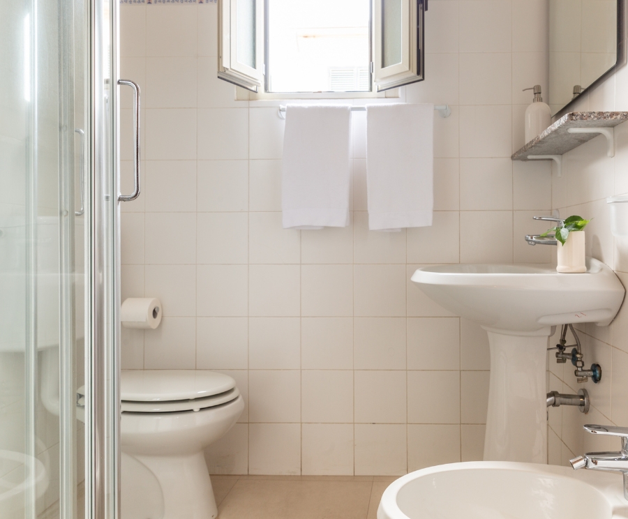 Il bagno con doccia è pratico e funzionale; in alcune unità è presente anche il bidet.