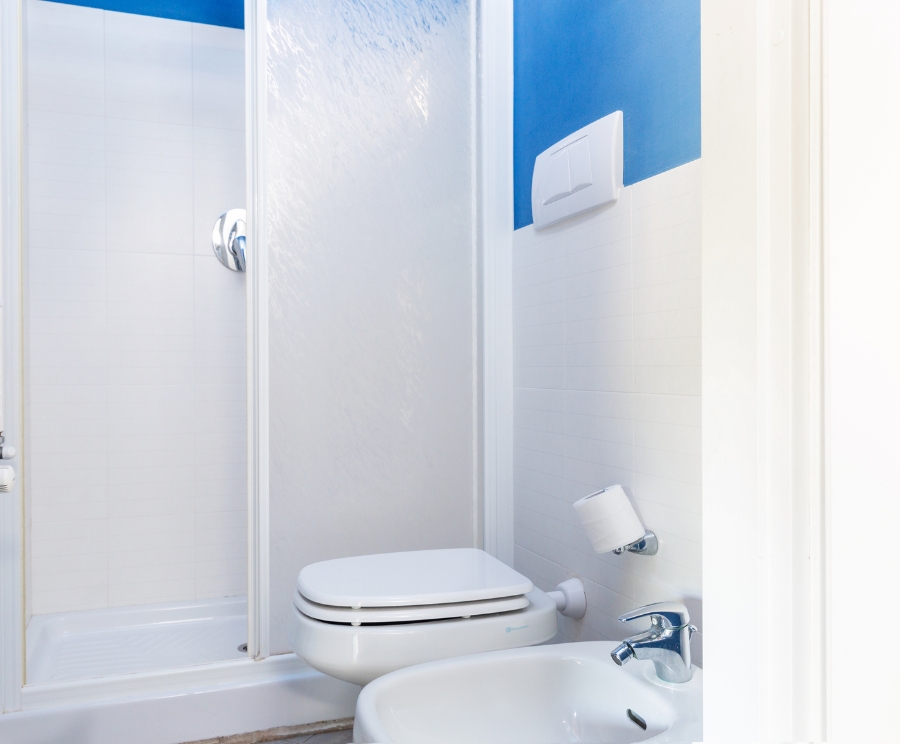 Il bagno privato con doccia è funzionale e completo. È inclusa la prima fornitura di biancheria da letto e da bagno, con cambio su richiesta a pagamento.