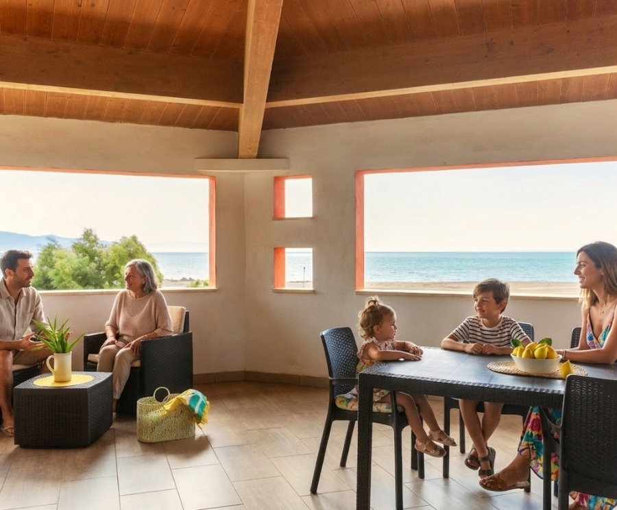 L’alloggio diventa così un luogo da vivere, dove il mare non è solo vicino, ma sempre davanti.