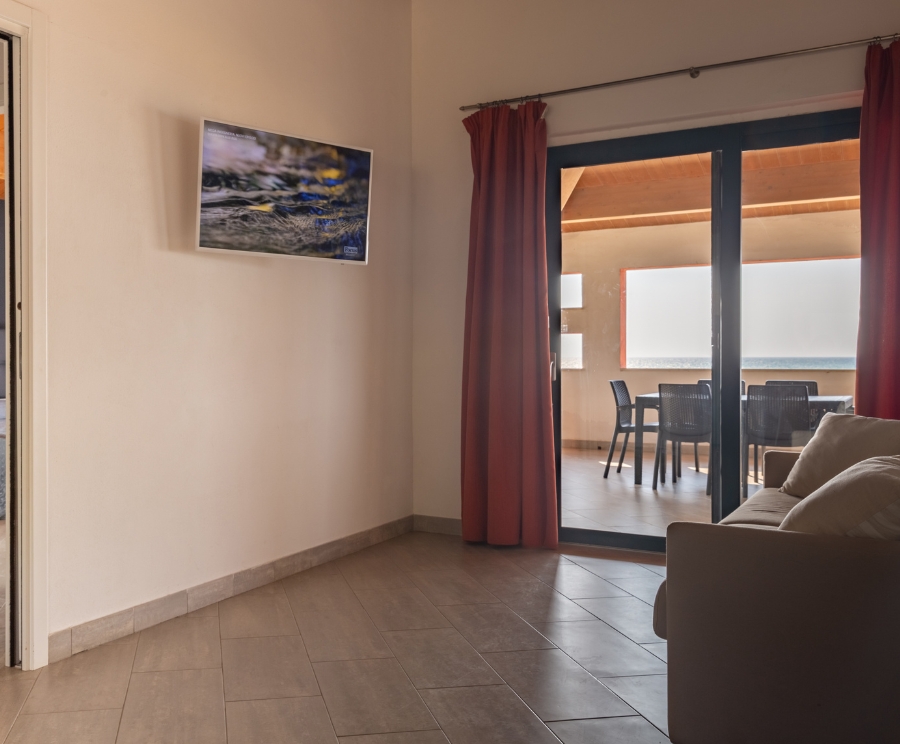 Disponibili in versione bilocale per 3 persone o trilocale per 6 persone, offrono ambienti ristrutturati e funzionali con zona notte, zona giorno, bagno privato e cucina attrezzata. La differenza è negli spazi, ma la vera costante è la TERRAZZA: ampia, affacciata sul mare, sempre presente.