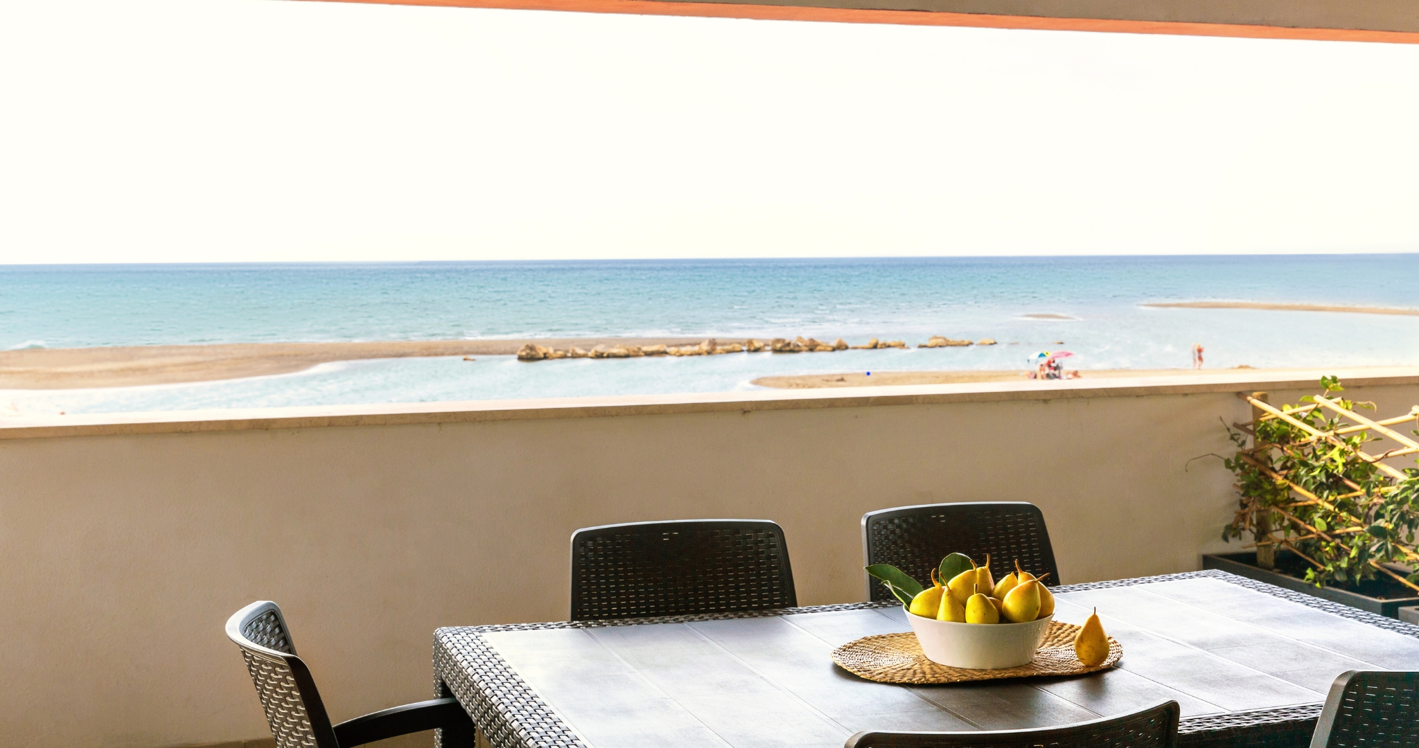 Sì, ogni appartamento dispone di una terrazza arredata, ideale per pranzi all’aperto e momenti di relax con vista mare.