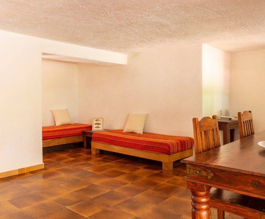 La villa può ospitare fino a 6-7 persone, grazie alle camere multiple e al soggiorno con divano letto.