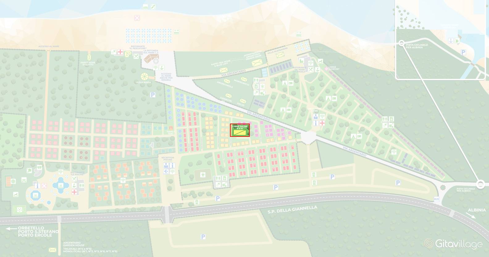 La posizione è strategica: ALL’INTERNO DEL VILLAGGIO, ma in una zona più riservata, per unire libertà e accesso a tutti i servizi.