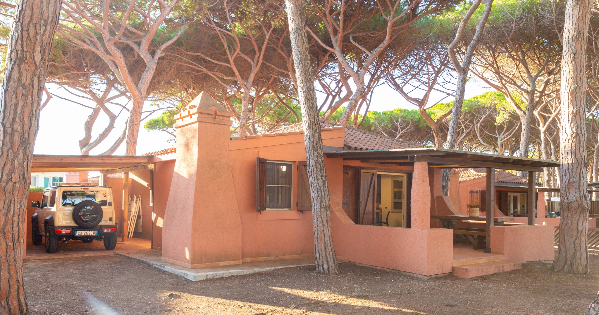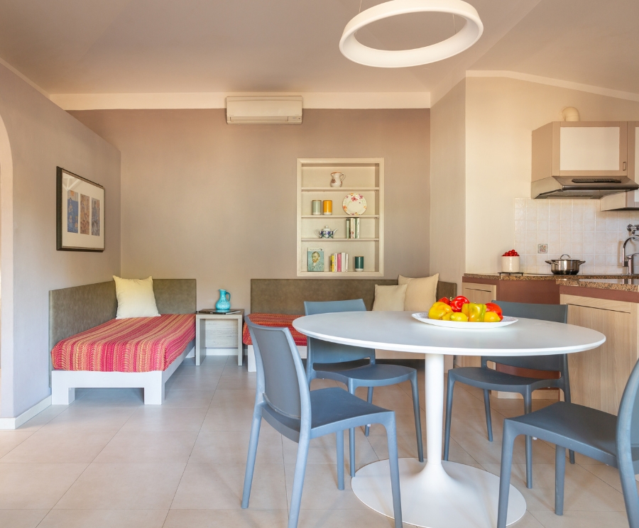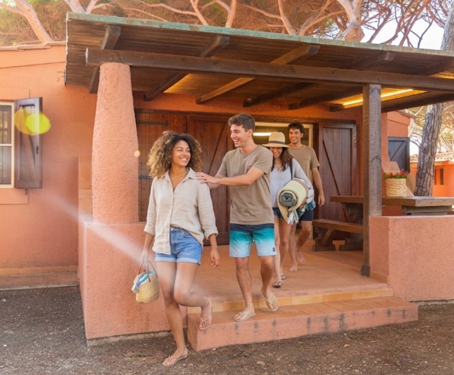 Un nome che è già una promessa. SEA, NATURA, RELAX: le tre parole che descrivono esattamente quello che trovi qui. La Villa Trilocale si trova sulla Giannella, custodita dalla PINETA, vicinissima alla spiaggia. Per 6 persone, con tre camere da letto, zona giorno, bagno, cucina attrezzata. L’esterno è il suo punto forte: un ampio patio e un giardino privato da cui si sentono le onde — ideale per colazioni in famiglia, cene all’aperto al tramonto, pomeriggi nell’ombra fresca dei pini. Include lettini e ombrellone al Gitavillage, piscine, animazione, Tartyland.